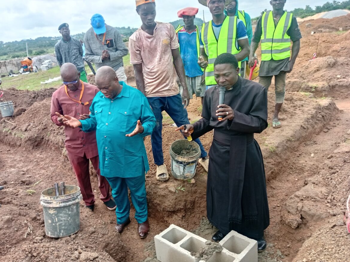 In a symbolic demonstration of unity and commitment, the foundation edges were laid sequentially: first by Rev. Omeiza on behalf of the donor, followed by the Vice Chancellor, the Registrar, and the Bursar.