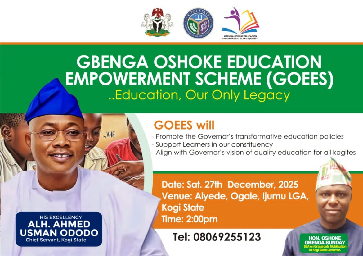 The statement reads “The office of the Senior Special Assistant to the Governor on Grassroots and Mobilization presents Gbenga Oshoke Education Empowerment Scheme (GOEES), supporting Governor Alhaji Usman Ahmed Ododo’s educational renaissance in Kogi State.”
