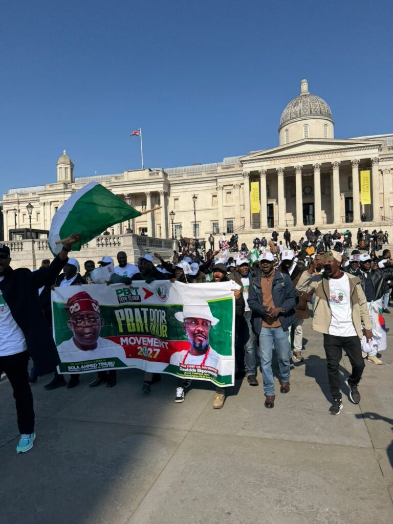 Hundreds of members of a grassroots mobilization movement, PBAT Door 2 Door Movement 2027, UK & Ireland chapter, on Thursday, joined other Nigerians to stage a solidarity rally on the streets of London to celebrate President Bola Ahmed Tinubu’s state visit to the United Kingdom.