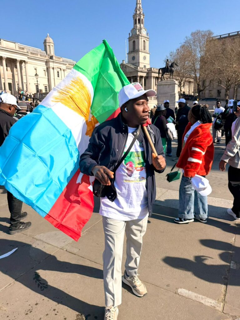 They equally chanted solidarity songs and slogans such as “On your mandate we shall stand”, “Nigeria is rising again”, and “2027 No vacancy in the Villa”, while also displaying the flags of Nigeria and the UK.