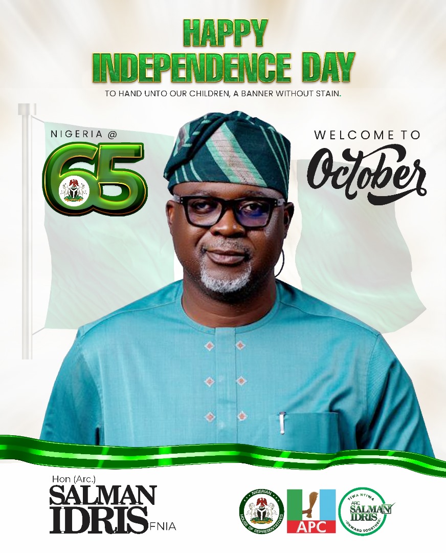 The member representing Kabba-Bunu Ijumu Federal Constituency at the Nation’s Green Chamber, Arc. Salman Idris has extended a message of hope and unity to his Constituents and people of Okun land on the 65th Independence of Nigeria.
