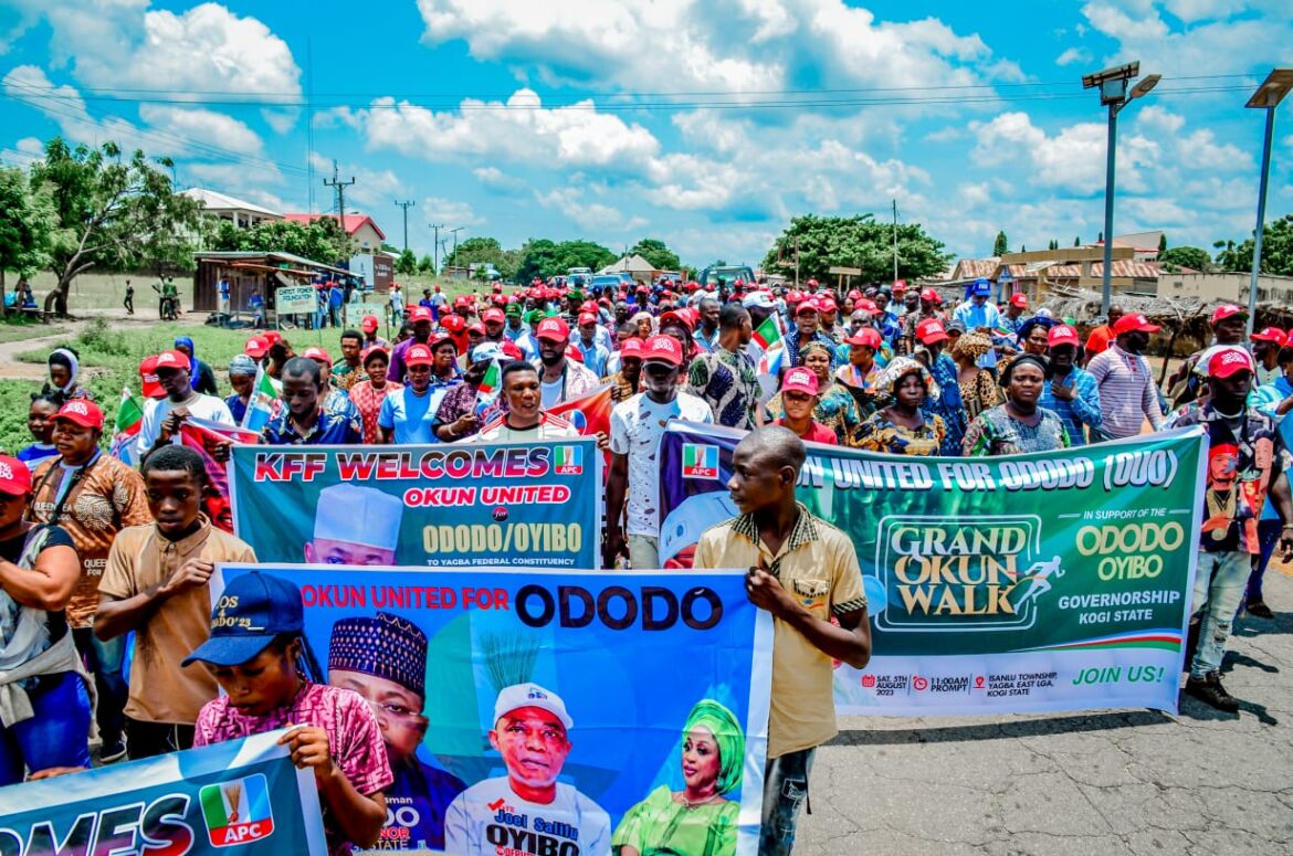 A Support Group, Okun United For Ododo on Friday held a Grand Walk in support of the All Progressives Congress (APC) Kogi State Governorship Candidate, Alh. Usman Ododo and his running mate, Joel Oyibo in Isanlu, headquarters of Yagba Federal Constituency.