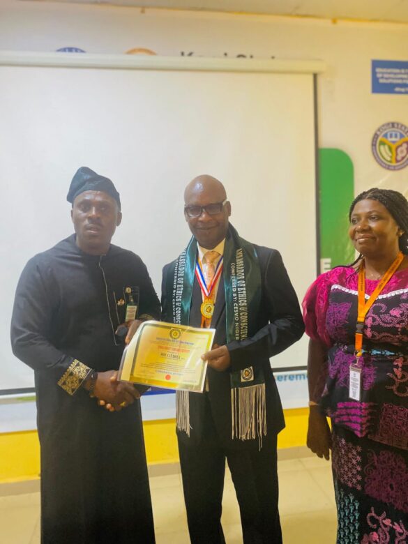 The Vice-Chancellor of Kogi State University, Kabba, Professor K. I. T. Eniola, fNSM, has been honoured with the prestigious title of Ambassador of Ethics and Conscience (AEC) alongside an Award of Merit, in recognition of his transparent and ethically driven leadership.