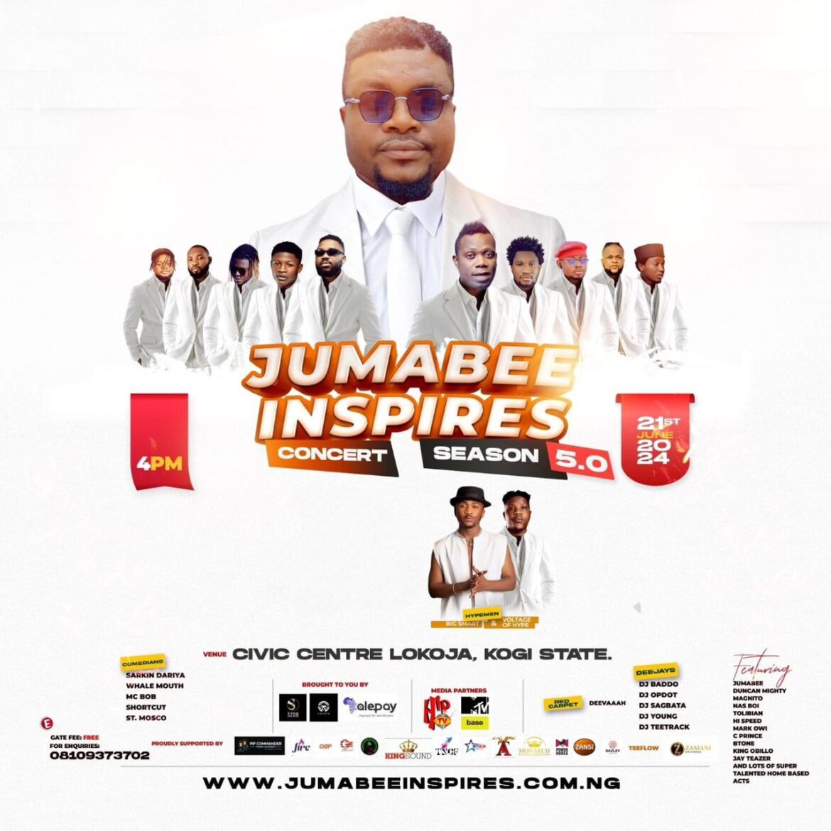 While Jumabee himself will be performing live, other Musicians expected are; Duncan Mighty, Magnito, Nas Boi, Tolibian and Hi Speed.
