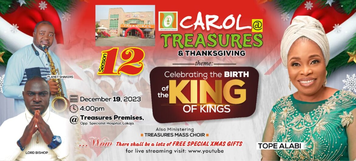 All is now set for the 12th Edition of Carol at Treasures organized by leading Eatery in Kogi State, Treasures Bakeries and Confectioneries, Lokoja.